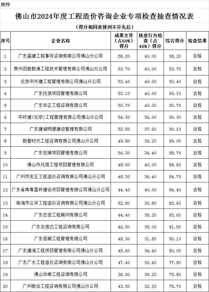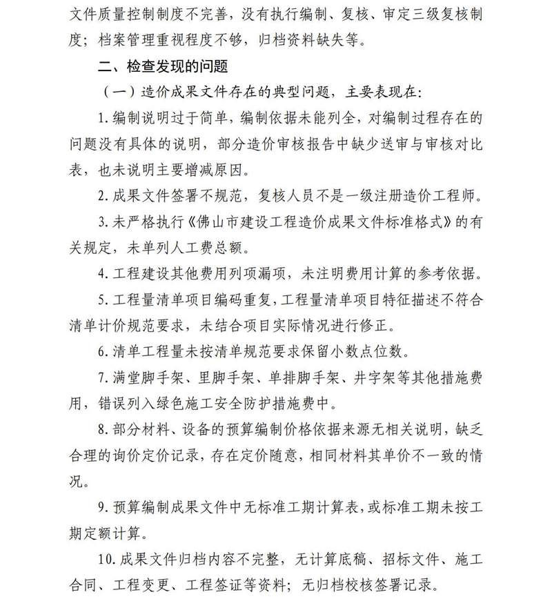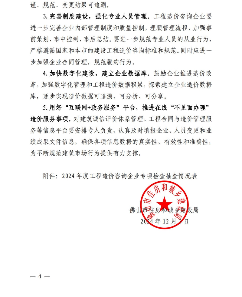 轉發 | 佛山市住房和城鄉建設局關于2024年度全市工程造價咨詢企業專項檢查情況的通報