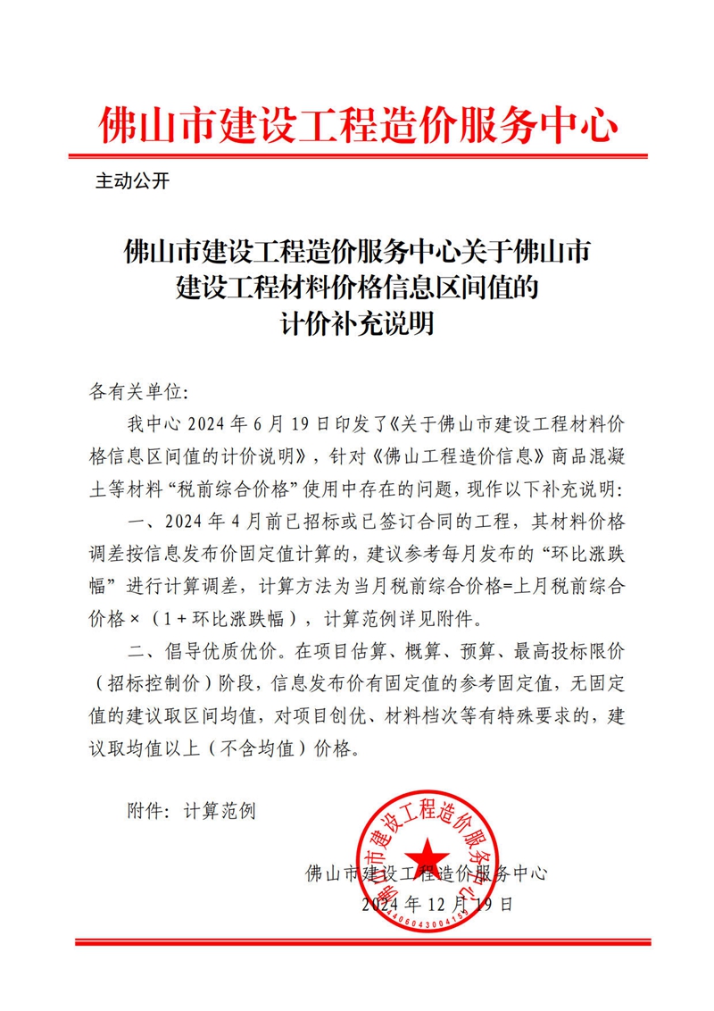 佛山市建設工程造價服務中心關于佛山市建設工程材料價格信息區間值的計價補充說明