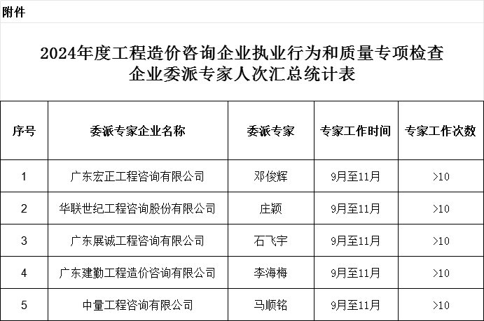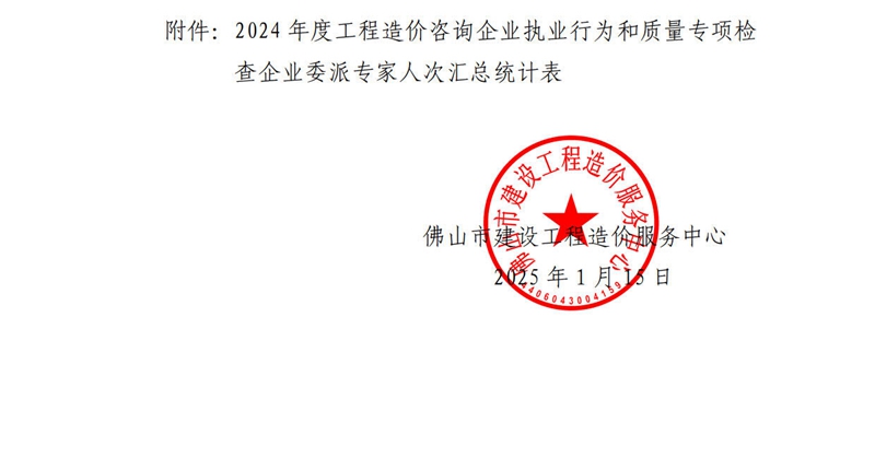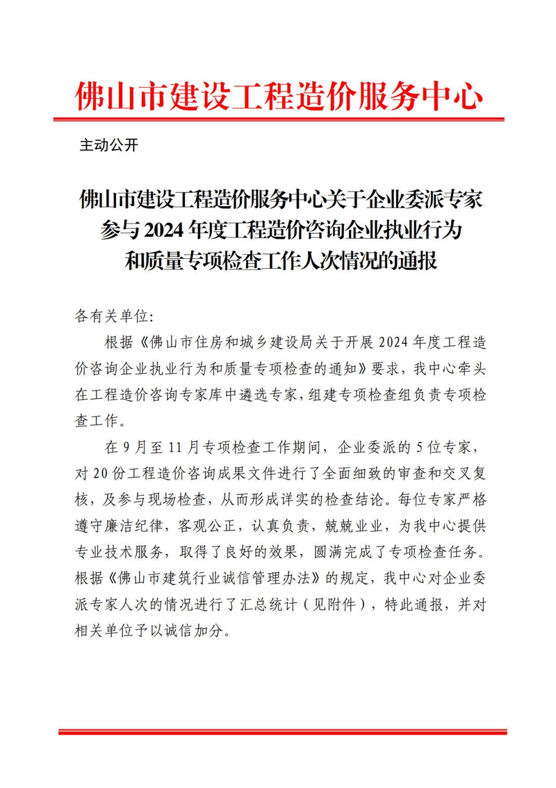 轉(zhuǎn)發(fā) | 佛山市建設(shè)工程造價服務(wù)中心關(guān)于企業(yè)委派專家參與2024年度工程造價咨詢企業(yè)執(zhí)業(yè)行為和質(zhì)量專項檢查工作人次情況的通報