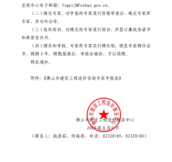 轉發 | 佛山市建設工程造價服務中心關于建立工程造價咨詢專家庫及申報的通知
