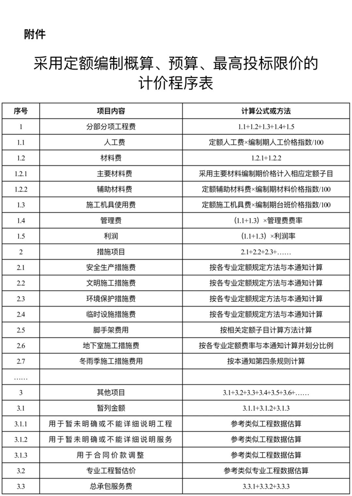 以定額為依據編制概算、預算、最高投標限價的計價程序相應調整,詳見附件。合同約定結算以定額為依據的,應結合合同價款調整約定進行工程結算。