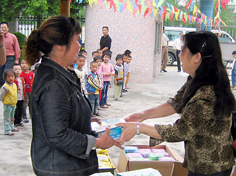 5月30日佛山市造價站工會與市質監站工會向樂從鎮良村幼兒園捐贈禮物(圖)