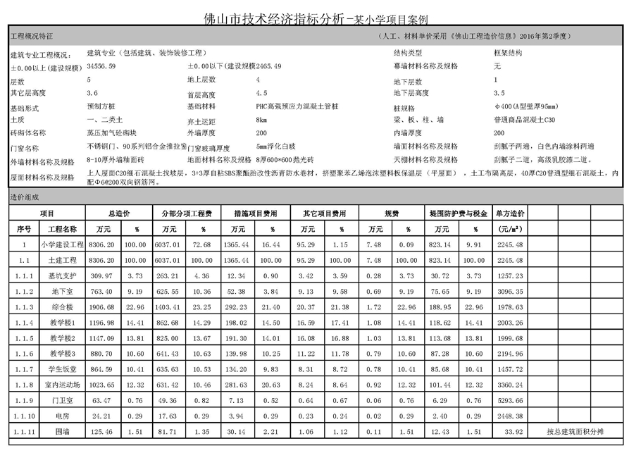佛山市2016年第3季度技術經濟指標分析—某小學項目案例2