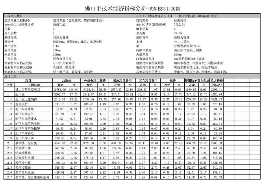 佛山市2016年第4季度技術(shù)經(jīng)濟(jì)指標(biāo)分析—某學(xué)校項(xiàng)目案例