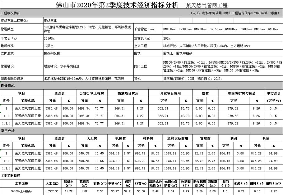 佛山市2020年第2季度技術經濟指標分析—某天然氣管網工程