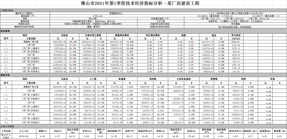 佛山市2021年第1季度技術經濟指標分析—某廠房建設工程