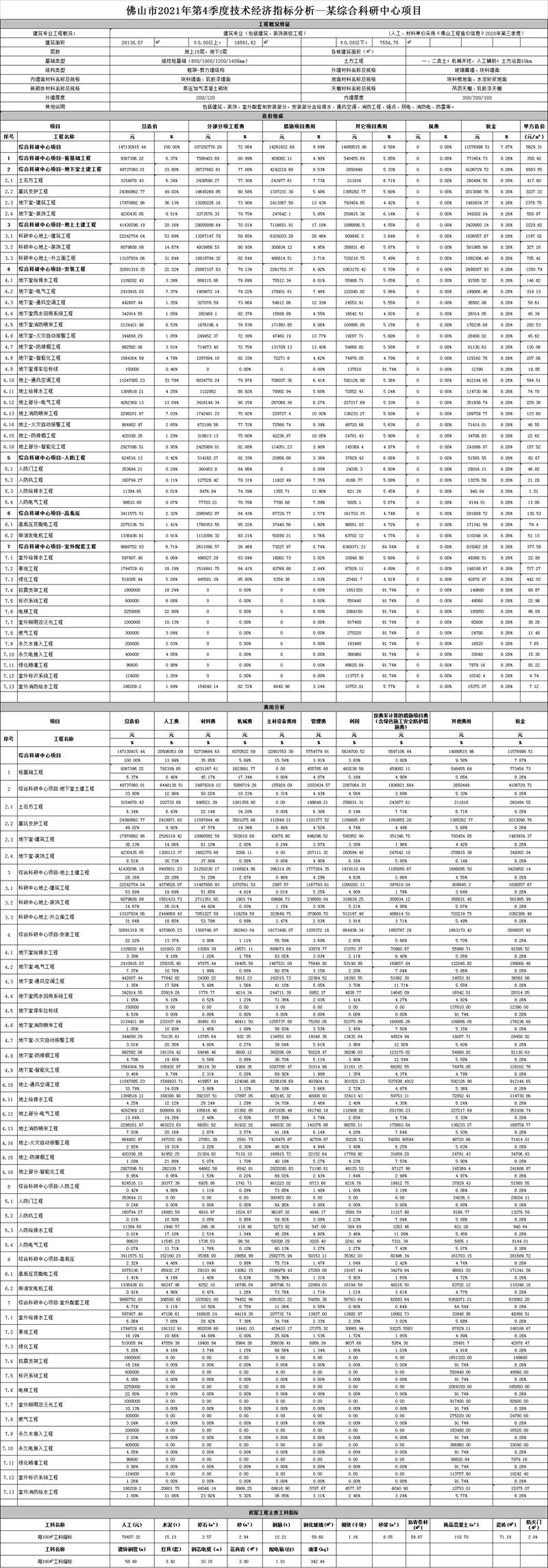 佛山市2021年第4季度技術經濟指標分析—某綜合科研中心項目
