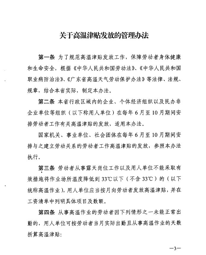 關于印發《關于高溫津貼發放的管理辦法》的通知